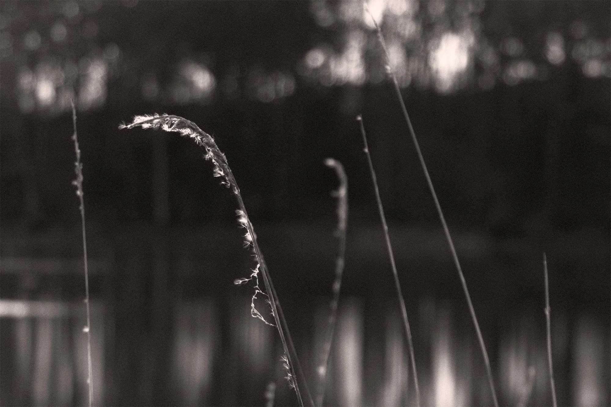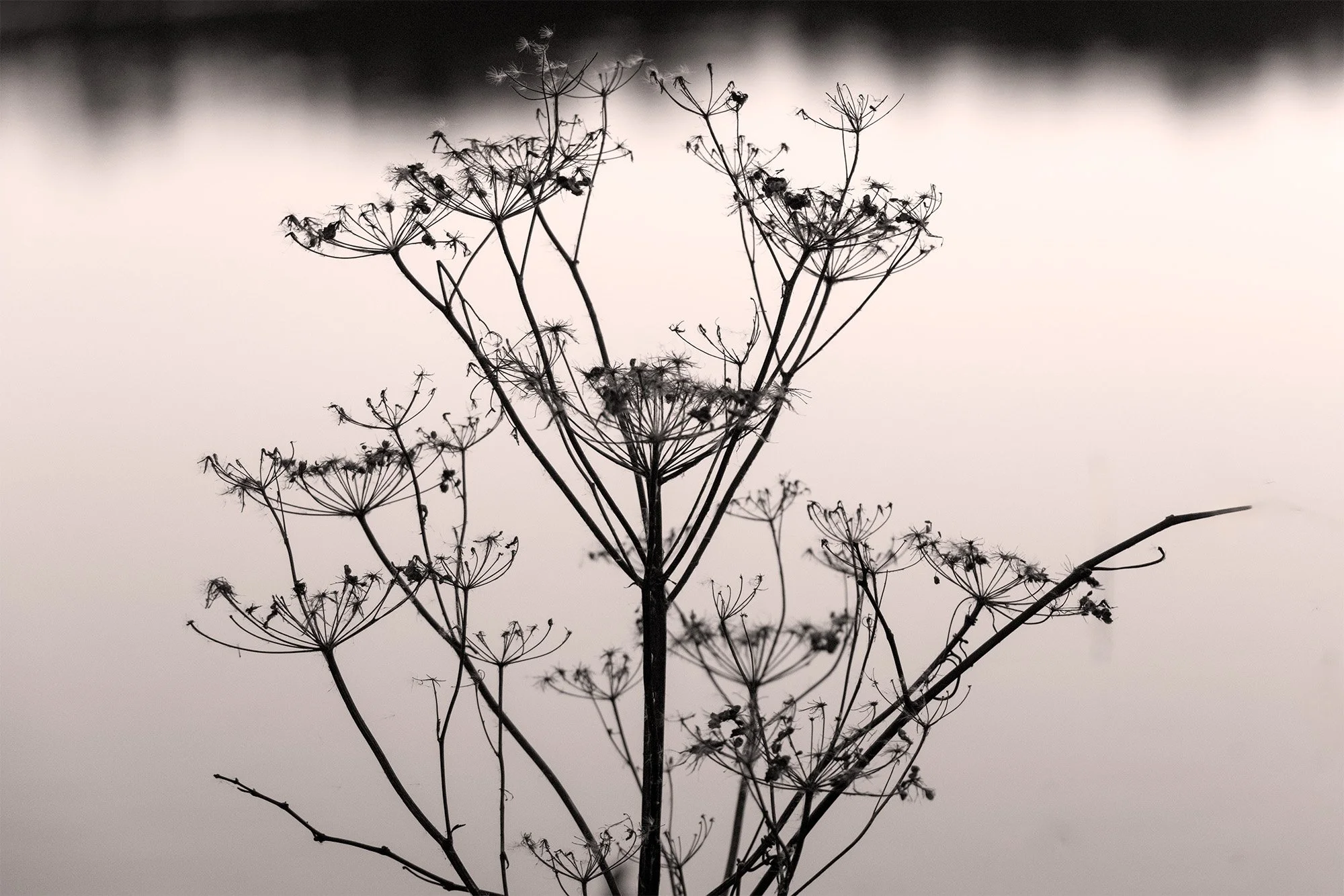 There is something about the forgotten feeling of the Dead Creek landscape that reminds me of Japanese ink painting. — an ancient art form depicting natural subjects in black ink, with washes of gray, on white paper. The style is minimalist and captures the essence of the thing — its fleeting presence — in a few brush strokes. An abundance of negative space invites the viewer to enter the atmosphere surrounding a branch, a bird, or stalk of grass. With its emphasis on light, dark, and emptiness, the genre borders on abstraction, but not with objective distance. or coldness. Ink painting is a deeply subjective art.